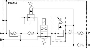 Schnellwechslersystems. Es ist als ein modulares System aufgebaut, dass die Verwendung eines 4/2 oder 4/3 Wegeventiles sowie den Einsatz eines zweiten Druckminderventiles erlaubt. Darüber hinaus sperrt es den Zylinder in der Verriegelungsposition des Wechslers leckölfrei ab, so dass das mit dem Schnellwechsler an die Baumaschine gekoppelte Werkzeug während des Betriebes sicher verriegelt ist. |
